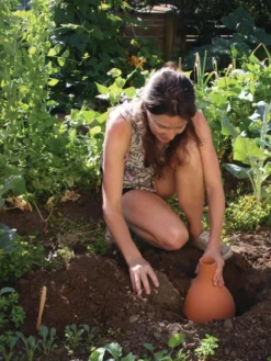 Take the guesswork out of watering with this clever system. Simply bury the vessel up to its neck, fill with water, cover the top with the lid, and let it get to work. The terra cotta will slowly release water into the soil allowing plant roots to take up as much as they need when they need it. Plants get ample hydration and you don’t have to worry about overwatering or losing water to surface evaporation — especially in dry climates or during water shortages.